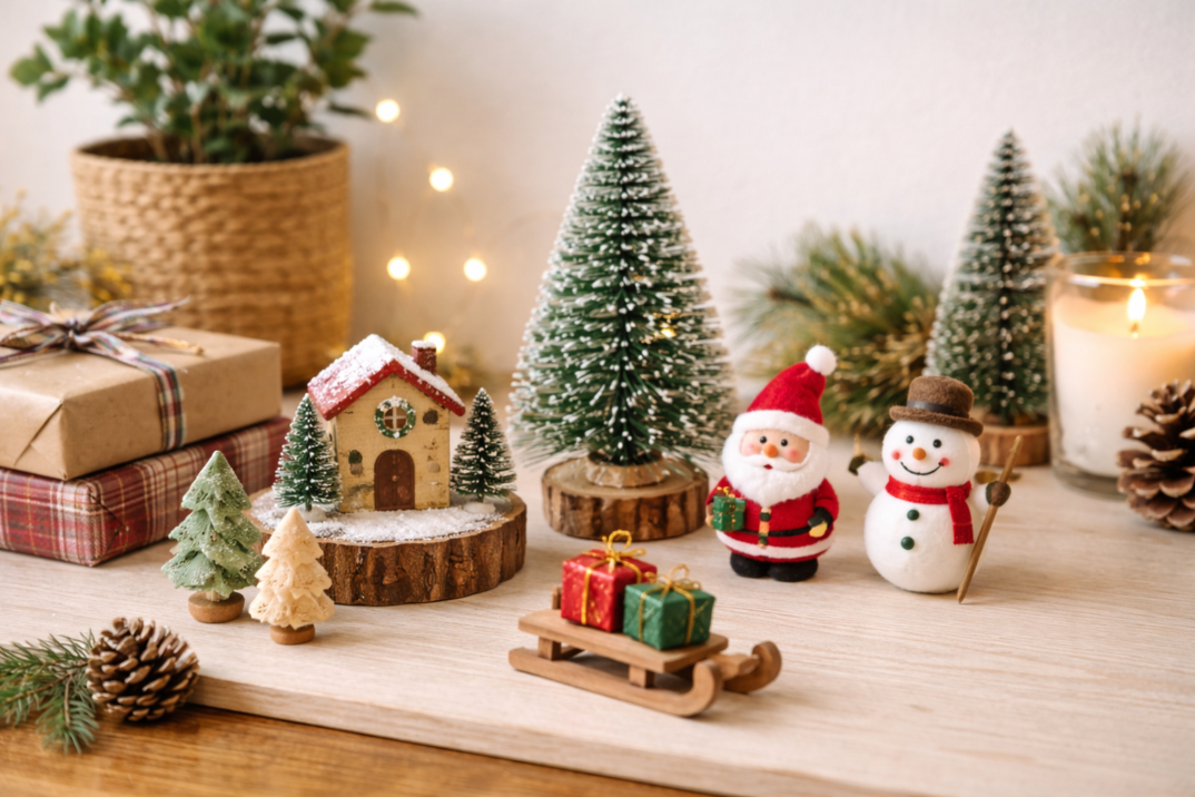 大きなツリーがなくても、卓上サイズの飾りがあれば十分です。