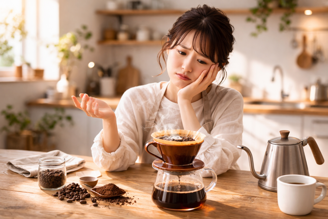 せっかく丁寧に淹れたのに「苦すぎる」と感じるときは、抽出のどこかで成分を引き出しすぎている可能性があります。