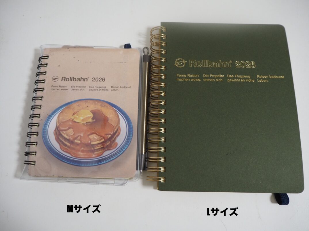 - MまたはLサイズ、マンスリーのついた「ダイアリー」タイプ
