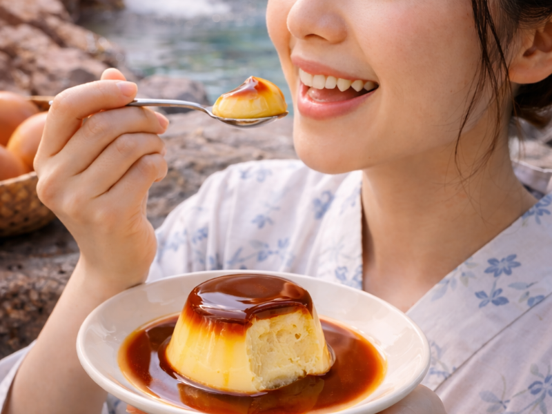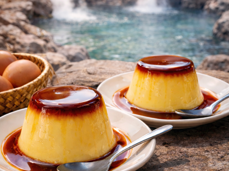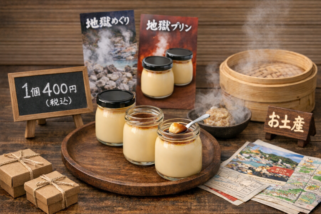 - 温泉の蒸気でプリンを蒸す「地獄蒸し」を取り入れているお店も多い