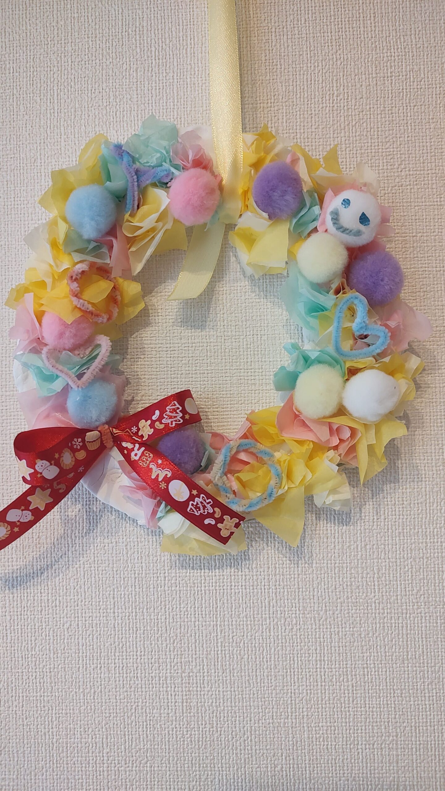 - 子どもと簡単クリスマスリース(紙粘土、お花紙)